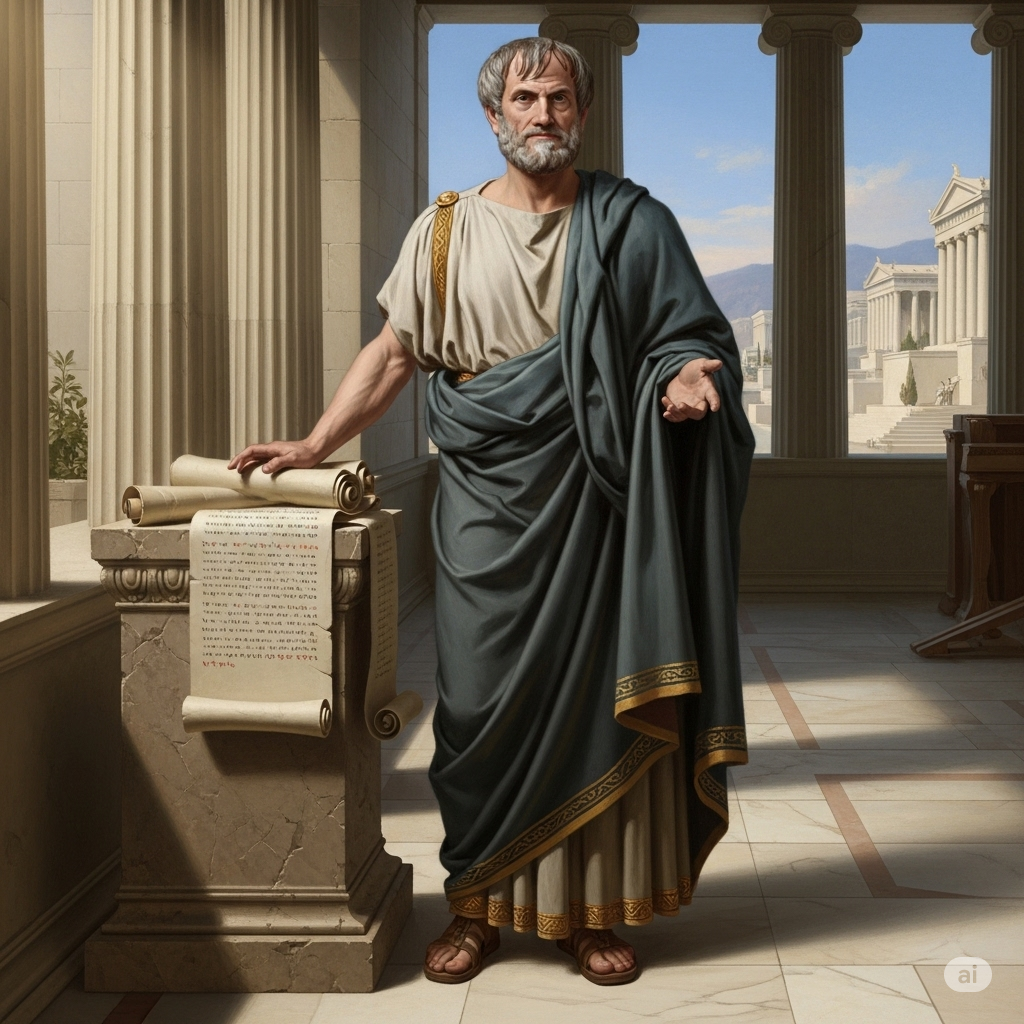Aristóteles (384 – 322 a.C.). Una de las mentes más influyentes de la Antigua Grecia. Filósofo, científico y polímata (en griego, polymathēs), dejó un legado inmenso en campos como la lógica, la ética, la biología, la política y la metafísica. Discípulo de Platón y maestro de Alejandro Magno.